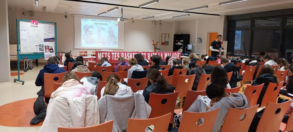 Les élèves sont informé sur la maladie, et participent à différents temps dans l’année pour, en fin d’année, permettre de récolter des dons pour l’association ELA.