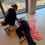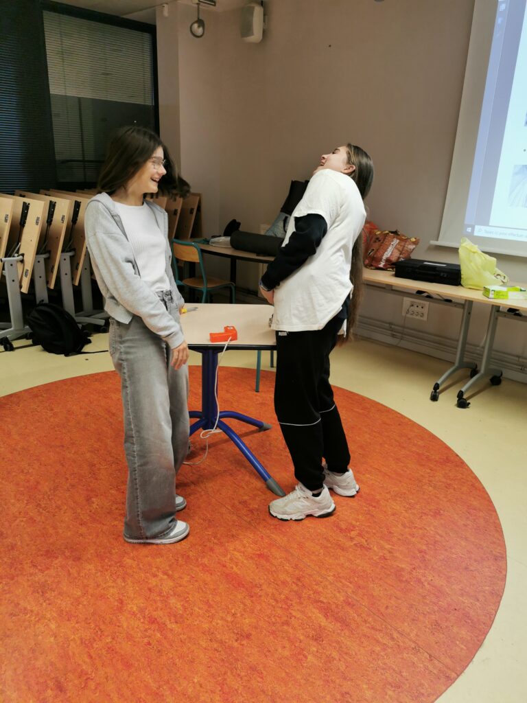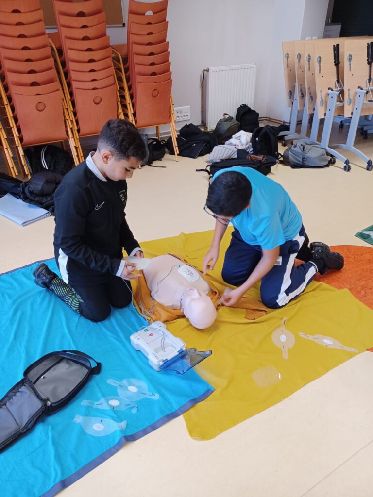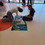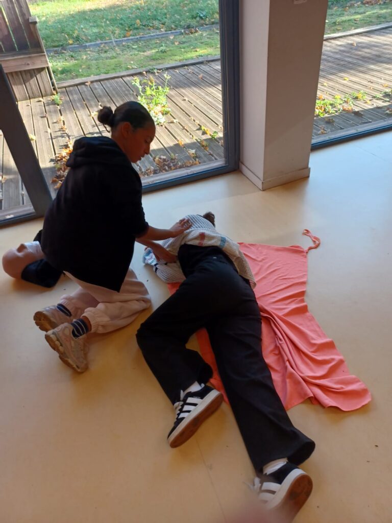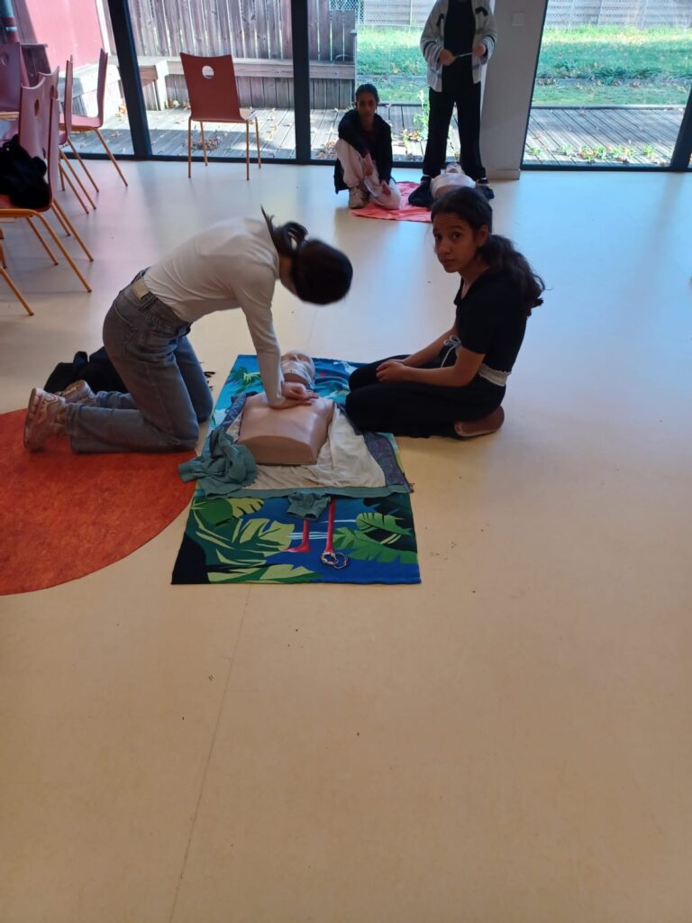 Nos deux enseignantes formatrices premiers secours, Mme BÉDRINES et Mme CROS, forment les élèves volontaires.