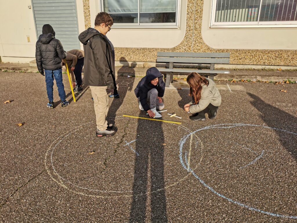 Au sein du collège René Cassin, deux enseignantes de mathématiques, Mme LABORIE et Mme SANIAL, ont décidé d’apporter une nouvelle dimension à l’apprentissage en organisant des séances de géométrie en plein air. Ces activités ont permis aux élèves de découvrir les concepts mathématiques d’une manière ludique et concrète, en utilisant leur environnement comme support pédagogique. L’approche a été très appréciée, offrant une expérience d’apprentissage plus immersive et dynamique. Cela démontre l’engagement de nos enseignants à rendre les mathématiques accessibles et intéressantes pour tous.