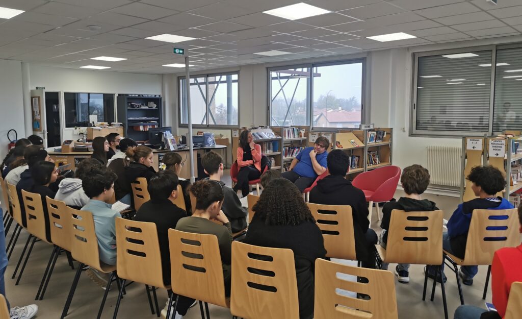 Dans le cadre d’une collaboration avec la médiathèque de Corbas et le Polaris, hier et aujourd’hui, nous avons reçu M Sylvain LEVEY auteur de la pièce « Michelle, doit-on t’en vouloir d’avoir fait un selfie à Auschwitz ? »;