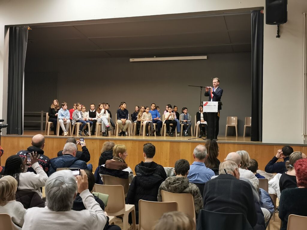 Les élèves élus au conseil municipal des enfants et des jeunes de la ville CORBAS se sont vu remettre aujourd’hui leurs « écharpes » par M le Maire, M VIOLLET.